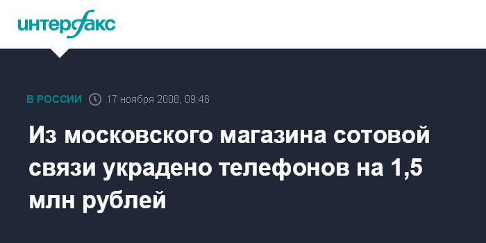 Москва. 17 ноября. INTERFAX.RU - На западе столицы в воскресенье вечером злоумышленники похитили из магазина сотовой связи телефоны на 1,5 млн рублей, сообщил "Интерфаксу" источник в правоохранительных органах города в понедельник.