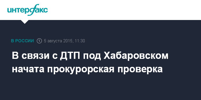 Москва. 5 августа. INTERFAX.RU - Прокуратура начала проверку в связи с ДТП в Хабаровском крае, жертвами которого стали 16 человек, сообщает Генпрокуратура России.