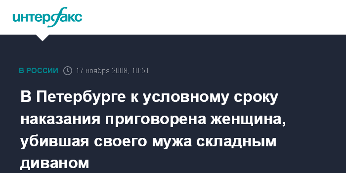 В Петербурге к условному сроку наказания приговорена женщина, убившая своего мужа складным диваном