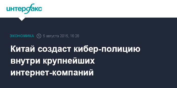 Компании, в которых будут командированы кибер-полицейские, не называются. Крупнейшие игроки китайского рынка - это онлайн-ритейлер Alibaba, интернет-холдинг Tencent и поисковик Baidu.
