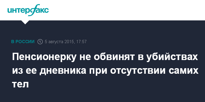 Пенсионерку не обвинят в убийствах из ее дневника при отсутствии самих тел