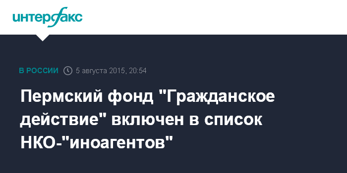 Пермский фонд "Гражданское действие" включен в список НКО-"иноагентов"