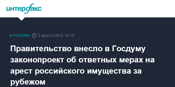 Правительство внесло в Госдуму законопроект об ответных мерах на арест российского имущества за рубежом