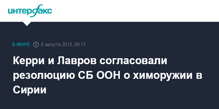 Москва. 6 августа. INTERFAX.RU - Главы дипломатических ведомств США и России Джон Керри и Сергей Лавровсогласовали в малайзийской столице проект резолюции СБ ООН по созданию механизма расследования и выявления виновных в применении химического оружия в Сирии, сообщил журналистам американский дипломатический источник.