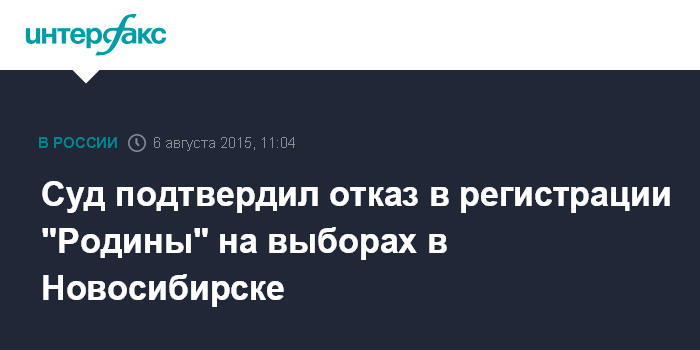Ранее избирательные комиссии Новосибирска и Новосибирской области отказали "Родине" в регистрации списков на выборы из-за недостаточного количества достоверных подписей, сославшись на расхождение данных в подписных листах с информацией базы УФМС по Новосибирской области.