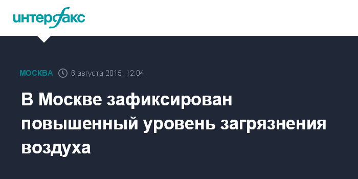 Москва. 6 августа. INTERFAX.RU - Повышенная степень загрязнения воздуха зафиксирована в Москве в минувшие сутки, прогноз на вечер четверга и утро пятницы неблагоприятен, сообщает Росгидромет.