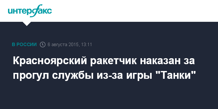 Красноярский ракетчик наказан за прогул службы из-за игры "Танки"