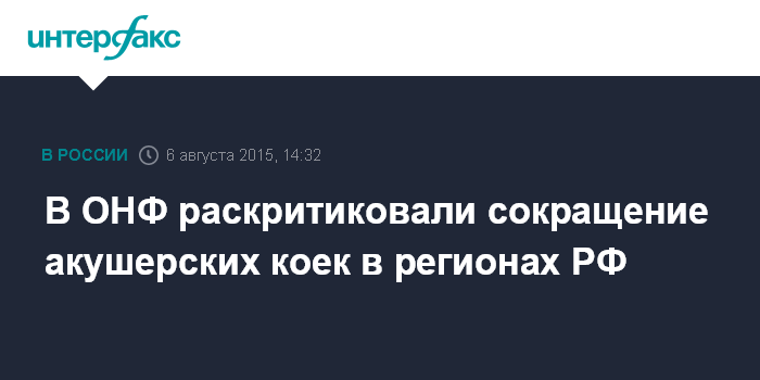 Согласно мониторингу ОНФ, акушерские койки сокращаются как в тех регионах, где в последние годы демографическая ситуация ухудшалась, так и в тех, где рождаемость растет. Так, из 11 регионов - лидеров по сокращениям - шесть субъектов, по данным Минтруда на апрель 2014 года, имели отрицательную демографическую динамику. Это Брянская, Волгоградская, Кемеровская, Воронежская, Тверская, Рязанская области.