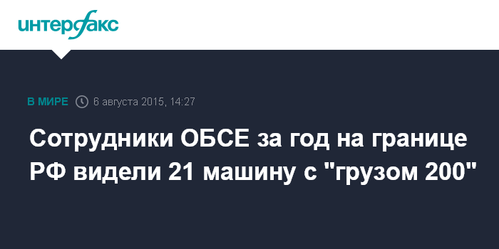 Москва. 6 августа. INTERFAX.RU - Сотрудники миссии ОБСЕ за год зафиксировали более 20 машин, перевозивших "груз 200" через российско-украинскую границу, сообщил руководитель миссии ОБСЕ в Ростовской области Поль Пикар.
