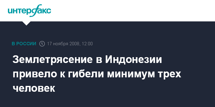 Москва. 17 ноября. INTERFAX.RU - По меньшей мере, три человека погибли, и еще 20 были ранены в результате землетрясения силой 7,5 градуса по шкале Рихтера, произошедшего на островах Сулавеси в Индонезии, передает агентство ЭФЭ.