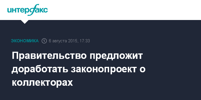 Москва. 6 августа. INTERFAX.RU – Правительство считает, что подготовленный депутатами законопроект об ужесточении регулирования коллекторов необходимо доработать, сообщил "Интерфаксу" источник в финансово-экономическом блоке правительства.