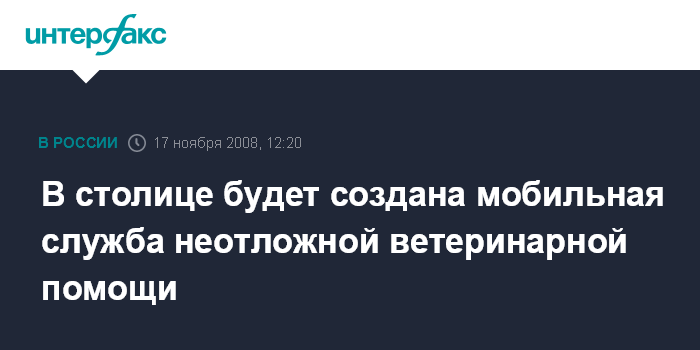 Москва. 17 ноября. INTERFAX.RU - В течение двух лет в Москве планируется создать мобильную службу неотложной ветеринарной помощи на дому животным, принадлежащим льготным категориям граждан.