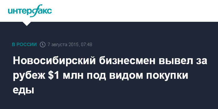 Новосибирский бизнесмен вывел за рубеж $1 млн под видом покупки еды