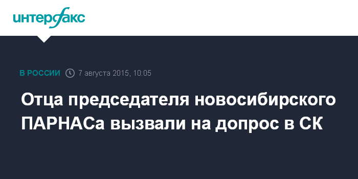 Москва. 7 августа. INTERFAX.RU - Председатель новосибирского отделения партии ПАРНАС Егор Савин сообщил, что его отца вызвали на допрос по делу о сборе подписей на выборах в региональное Заксобрание.