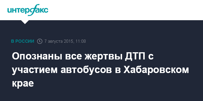 В среду днем на трассе Хабаровск - Комсомольск-на-Амуре в районе озера Гасси столкнулись два рейсовых междугородних автобусов. В результате погибли 15 человек, десятки получили травмы. Среди погибших 11 жителей Хабаровского края, три жителя Якутии и один гражданин КНР.