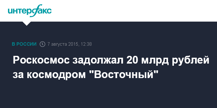 Роскосмос задолжал 20 млрд рублей за космодром "Восточный"