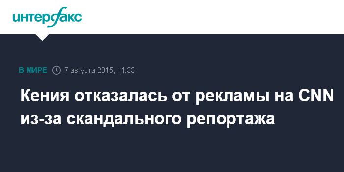 Москва. 7 августа. INTERFAX.RU - Кенийское управление туризма приостановило действие рекламного контракта с американской телекомпанией CNN из-за телерепортажа, в котором Кению назвали "рассадником террора" (hotbed of terror), передает BBC News.
