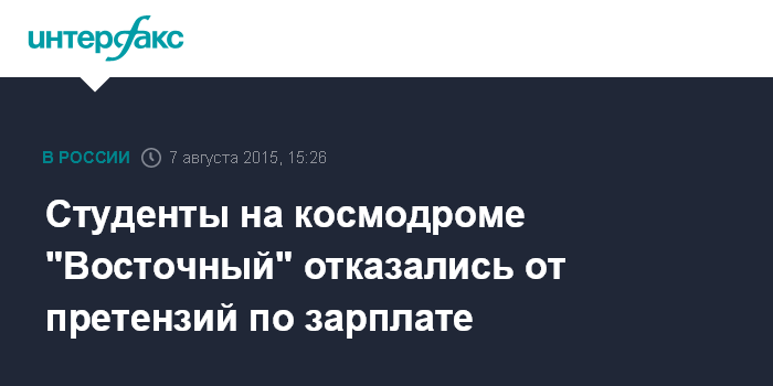 Накануне агентство "Интерфакс" сообщило, что сотрудники прокуратуры выехали на объекты космодрома "Восточный" для встречи с группой студентов, недовольных заработной платой. Представитель студенческого отряда ранее заявлял в местных СМИ, что около 200 студентов отказываются продолжать работать, так как вместо обещанных 25 тысяч рублей часть студентов получила на 10 тысяч рублей меньше.