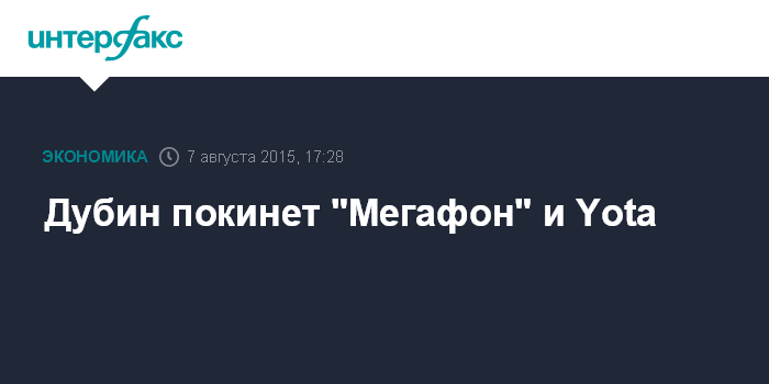 Михаил Дубин, совмещавший должности исполнительного директора по развитию бизнеса на массовом рынке и гендиректора ООО "Скартел" (бренд Yota), принял решение покинуть компанию, чтобы заняться собственными проектами, говорится в сообщении "Мегафона".