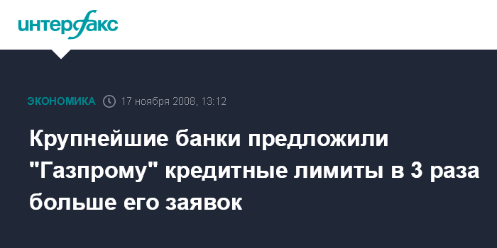 Крупнейшие банки предложили "Газпрому" кредитные лимиты в 3 раза больше его заявок