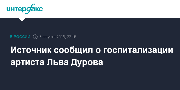 Москва. 7 августа. INTERFAX.RU - Народный артист СССР Лев Дуров помещен в одну из московских клиник в тяжелом состоянии, сообщил "Интерфаксу" в пятницу вечером источник в медицинских кругах столицы.