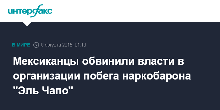 Москва. 8 августа. INTERFAX.RU -Три четверти мексиканцев считают, что коррумпированные чиновники помогли боссу наркокартеля Хоакину Гусману по прозвищу "Эль Чапо" устроить побег из тюрьмы. Такие данные содержаться в опросе компании Parametría, который приводит The Guardian.