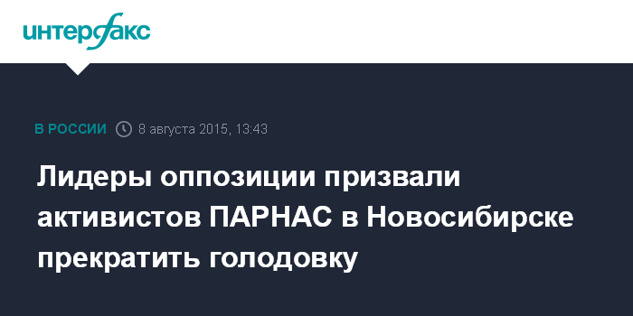 Москва. 8 августа. INTERFAX.RU - Лидеры оппозиции обратились к новосибирским активистам с призывом прекратить голодовку.