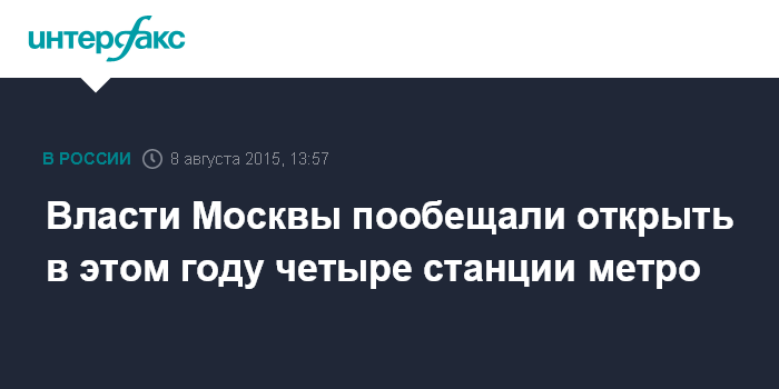 Москва. 8 августа. INTERFAX.RU - По итогам 2015 года в Москве будет открыто четыре новые станции метро и пройдено 4,5 км тоннелей, сообщил на коллегии Стройкомплекса Москвы в субботу заместитель мэра города по вопросам градостроительной политики и строительства Марат Хуснуллин.