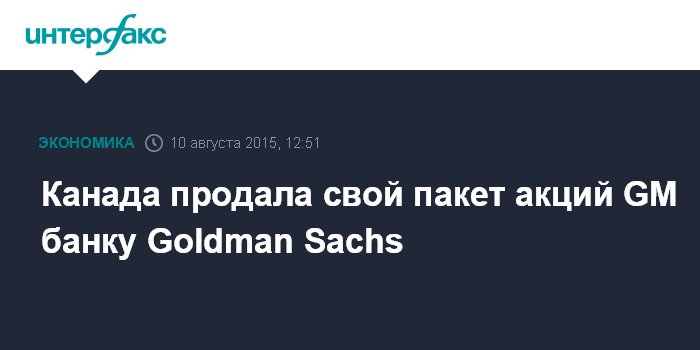 Канада продала свой пакет акций GM банку Goldman Sachs