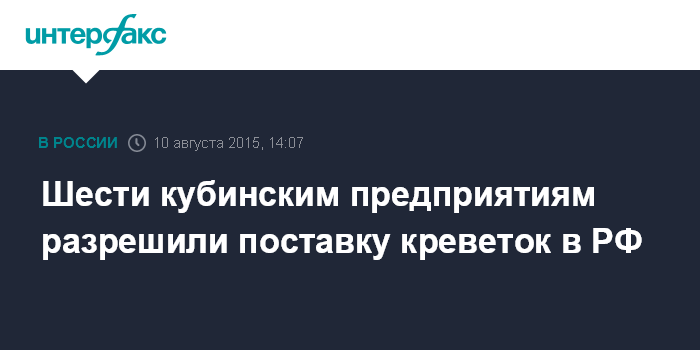 Москва. 10 августа. INTERFAX.RU - Россельхознадзор разрешил шести кубинским предприятиям поставку в РФ креветок и других ракообразных.