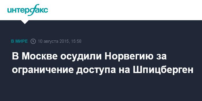 Москва. 10 августа. INTERFAX.RU - Москва протестует против решения Осло ограничить доступ на архипелаг Шпицберген и заявляет, что данные действия не соответствуют Договору о Шпицбергене от 1920 года, заявляет МИД РФ.