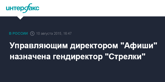 Управляющим директором "Афиши" назначена гендиректор "Стрелки"