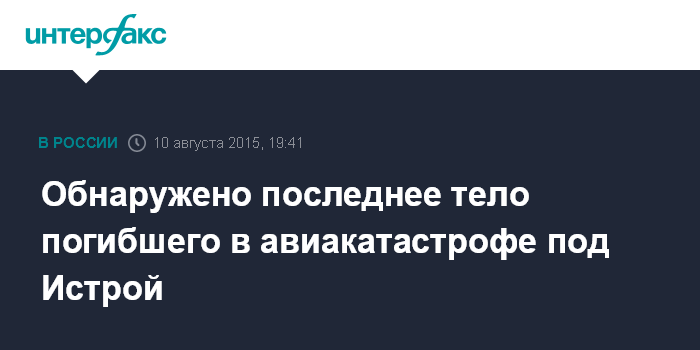 Москва. 10 августа. INTERFAX.RU - В Истринском водохранилище найдено тело последнего, девятого погибшего в авиакатастрофе в минувшую субботу, сообщил официальный представитель СКР Владимир Маркин.