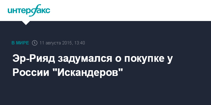 Москва. 11 августа. INTERFAX.RU - Эр-Рияд ведет переговоры с Москвой по военно-техническому сотрудничеству, в том числе по вопросу возможного приобретения российских комплексов типа "Искандер".