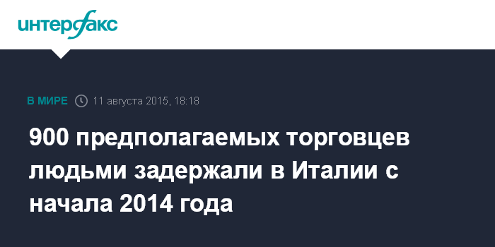 Москва. 11 августа. INTERFAX.RU - Стражам порядка Италии удалось задержать с января 2014 года почти 900 человек, которые подозреваются в торговле людьми, сообщает во вторник итальянская газета Avvenire.