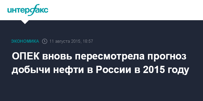 Москва. 11 августа. INTERFAX.RU - Организация стран-экспортеров нефти (ОПЕК) в очередной раз пересмотрела прогноз объемов добычи нефти в России в 2015 году в сторону повышения.