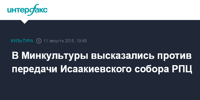 Москва. 11 августа. INTERFAX.RU - Министр культуры Владимир Мединский считает, что Исаакиевский собор должен остаться в прежнем статусе.