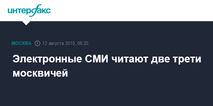 Москва. 12 августа. INTERFAX.RU - Сайты электронных средств массовой информации в месяц в среднем посещают 63% москвичей старше 16 лет, говорится в сообщении о результатах исследования аналитического подразделения департамента информационных технологий столицы, опубликованном на сайте ведомства.