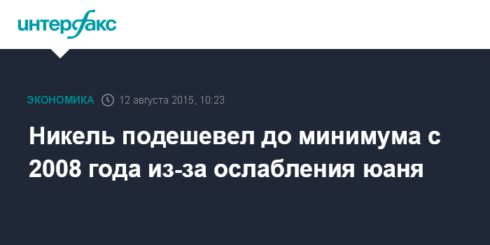 Никель подешевел до минимума с 2008 года из-за ослабления юаня
