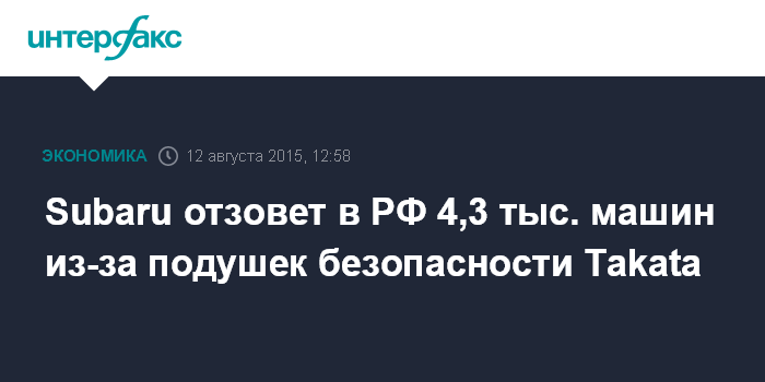 Subaru отзовет в РФ 4,3 тыс. машин из-за подушек безопасности Takata