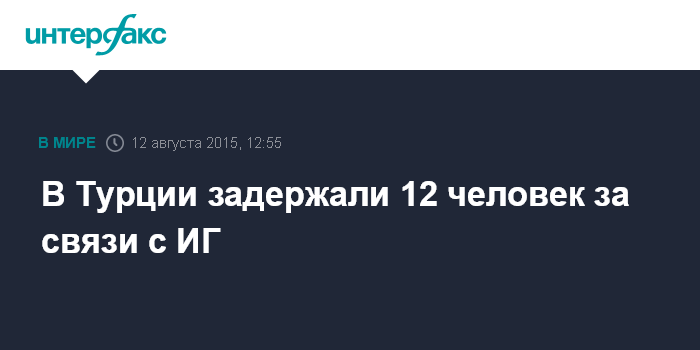 Москва. 12 августа. INTERFAX.RU - Правоохранительные органы Турции задержали не менее 12 человек, подозреваемых в связях с экстремистами из группировки "Исламское государство" (ИГ), сообщает в среду Анатолийское информагентство.