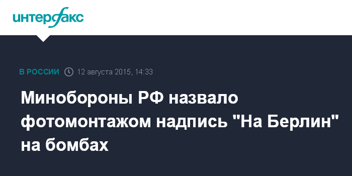 Москва. 12 августа. INTERFAX.RU - В Минобороны РФ назвали глупостью сообщения немецких журналистов о том, что на учениях российских ВВС к самолетам якобы прикреплялись бомбы с надписью "На Берлин!".