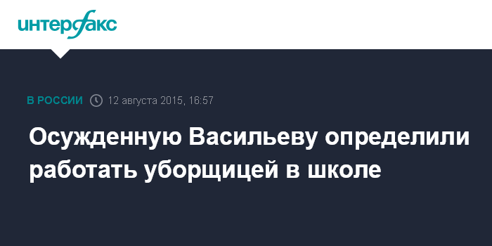 "Наконец, сегодня наши представители (общественной наблюдательной комиссии - ИФ) лично увидели Васильеву в колонии и поговорили с ней. Ее определили в хозяйственный отряд - это конечно не швейный цех, где все работают по графику", - сказал Цветков в среду "Интерфаксу".