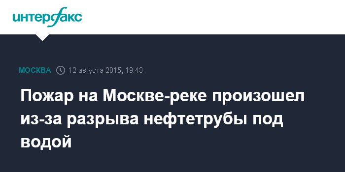 Москва. 12 августа. INTERFAX.RU - Возгорание нефтепродуктов на Москве-реке произошло из-за разрыва трубы, проходящей под рекой, сообщил "Интерфаксу" и.о. главы Росприроднадзора Амирхан Амирханов.