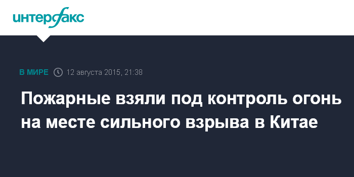 Москва. 12 августа. INTERFAX.RU - Огонь, бушующий на месте сильного взрыва в городе центрального подчинения КНР Тяньцзине, взят под контроль, сообщают китайские СМИ, отмечая, что на месте происшествия пропали двое пожарных.