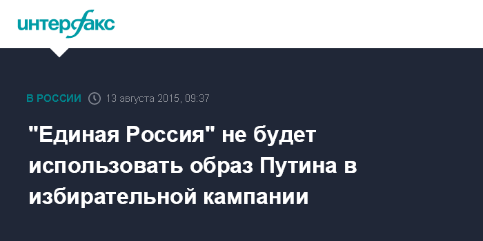 Москва. 13 августа. INTERFAX.RU - Партия "Единая Россия" не будет обращаться к президенту Владимиру Путину с запросом об использовании его образа в агитации на выборах в Госдуму, сообщает в четверг "Коммерсант". Эту информацию изданию подтвердили и в партии, и в Кремле.