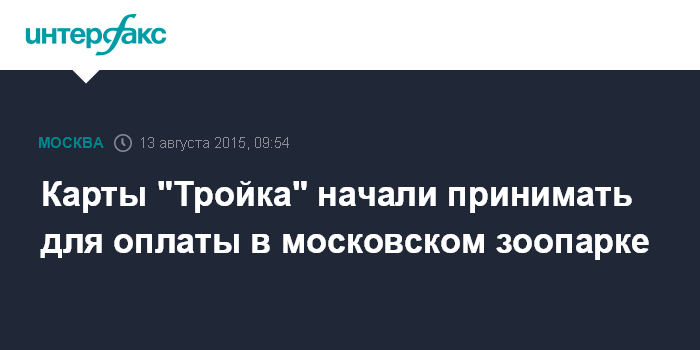 Москва. 13 августа. INTERFAX.RU - Пользователи карты "Тройка" получили возможность посещать столичный зоопарк без необходимости стоять в очереди за билетом, им достаточно приложить документ к турникету на главном входе.