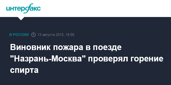 Виновник пожара в поезде "Назрань-Москва" проверял горение спирта