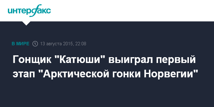 Москва. 13 августа. INTERFAX.RU - Норвежец Александр Кристофф из российской велокоманды "Катюша" победил на первом этапе "Арктической гонки Норвегии" протяженностью 213,5 км.