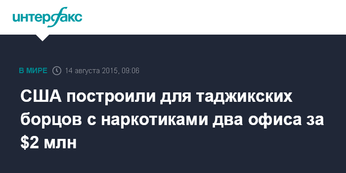 Москва. 14 августа. INTERFAX.RU - США передали таджикскому Агентству по контролю за наркотиками (АКН) два здания, построенные и оборудованные на средства американских налогоплательщиков, сообщило в пятницу посольство США вДушанбе.